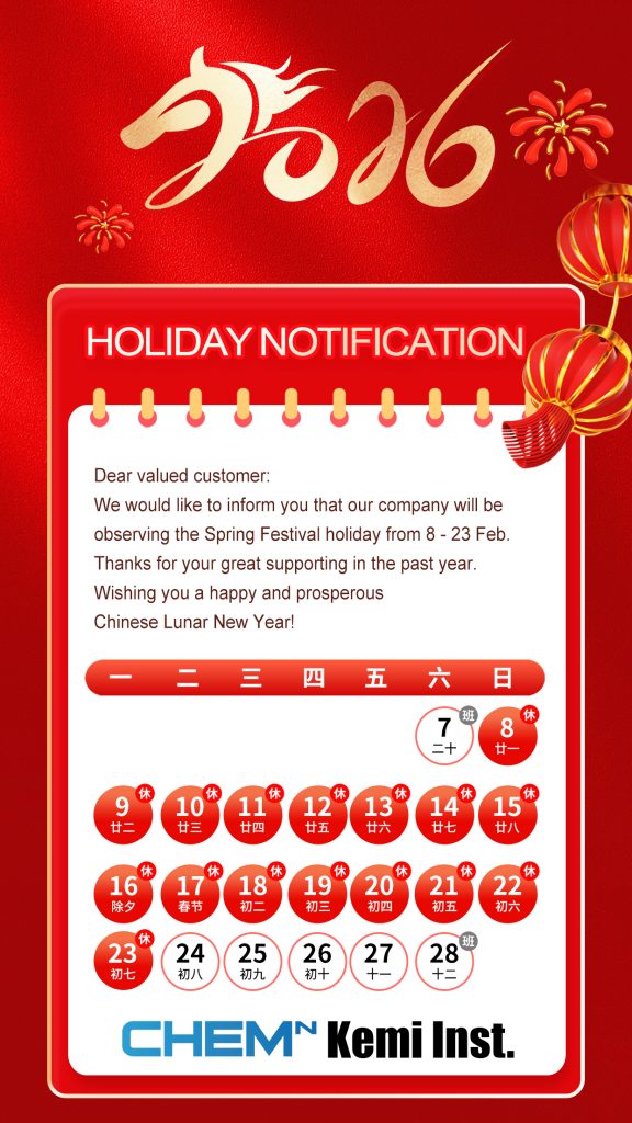 We would like to inform you that our company will having our Spring Festival holiday from 8- 23 Feb.